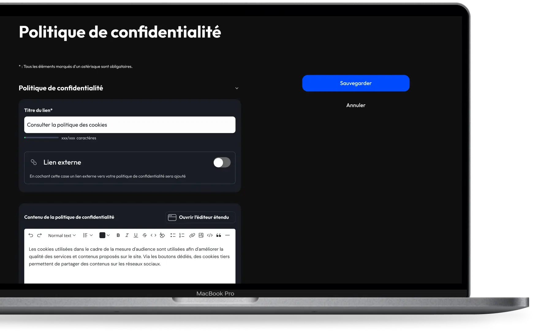 Oubliez les configurations complexes ! Le panel d'administration RWD de GoodBiZZ Consentement est facile à prendre en main, permettant à vos équipes juridiques et marketing de personnaliser les contenus légaux instantanément.